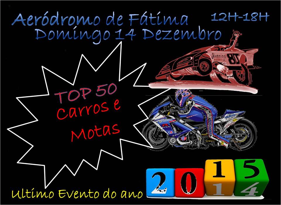 Loading... X 14 Dezembro – Arranques Top 50 Carros e Motas – Aeródromo Fátima 9 de Dezembro de 2014 Último Evento do Ano « 20 Dezembro – Jantar / Arranques Natal – Santarém 6 Dezembro – Noite VAG – Santarém »